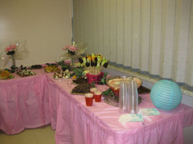 My aunt made the most incredible food! Chicken salad sandwiches on croissants, fruit bouquets, chocolate-covered strawberries, brownies, cheesecake, and so much more!